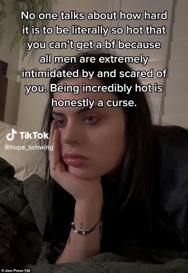 Hope Schwing, 24 ans, originaire de Los Angeles, explique qu’être sexy à l’heure actuelle est en fait une malédiction, car cela signifie que vous avez des relations sexuelles avec des hommes.